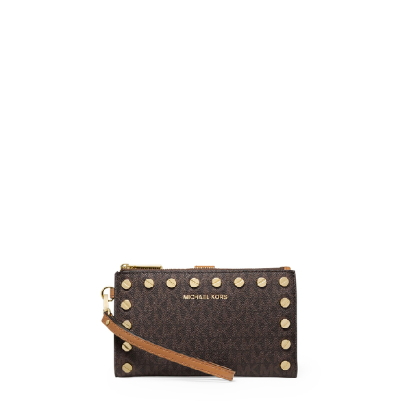 Michael Michael Kors Adele Studded Logo Smartphone Wallet In Brown Modesens